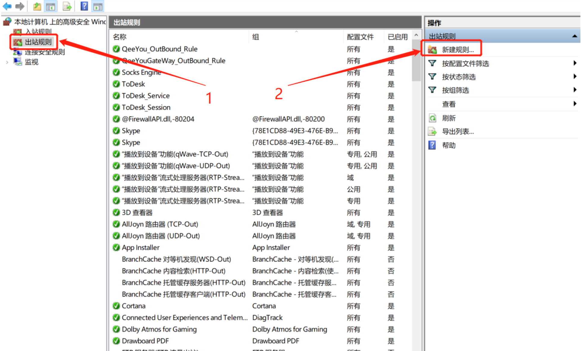 出站规则中,点击新建规则。